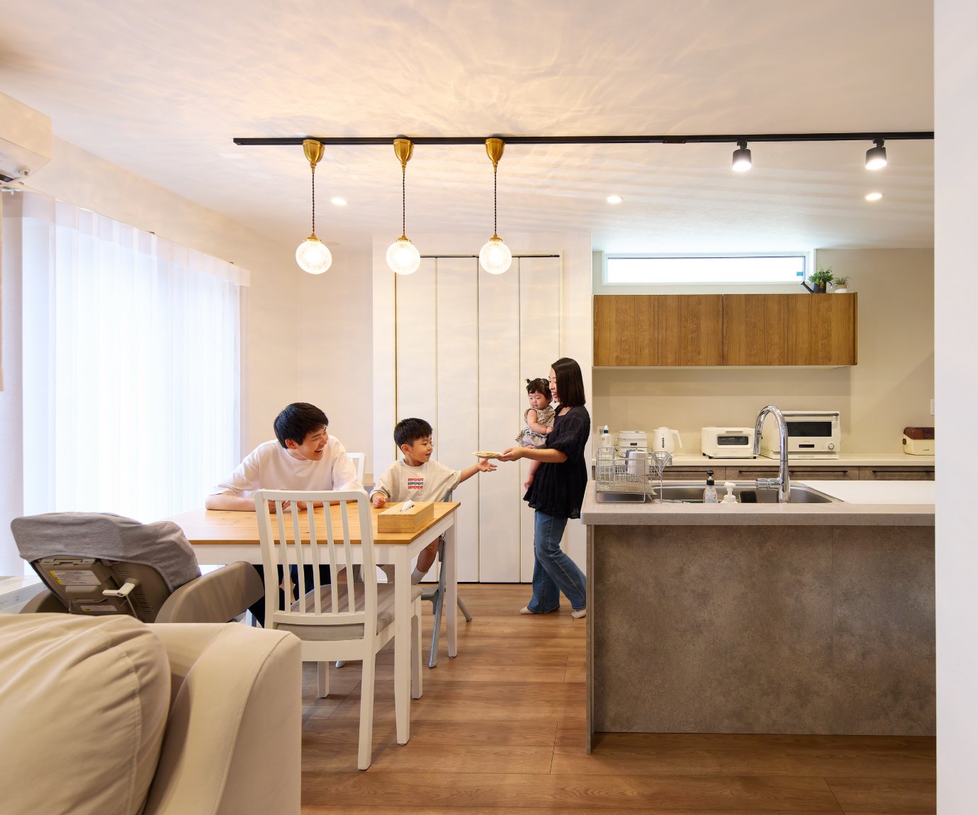 Y様ご家族の住まいには、子育て目線の工夫と、ご夫婦の想いが随所に込められていました。 考え抜かれた収納計画と生活動線、そして家族が自然につながる空間。